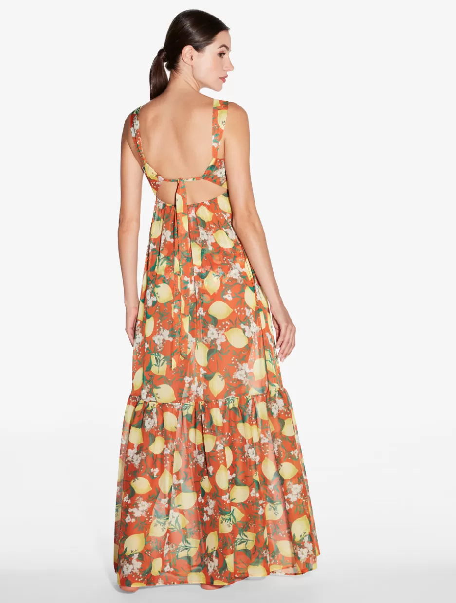 Capturing the irresistible mood of an Italian summer, the Amalfi Twist Maxi Dress in orange features a fresh and vibrant print of lemons and flowers. Cut to a timeless and flattering silhouette, it’s finished with contemporary, cut-out detailing and halterneck ties. Designed with versatile dressing in mind, wear as an effortless cover-up over your striking swimwear or style with sandals or heels for perfectly elegant day-to-night style.