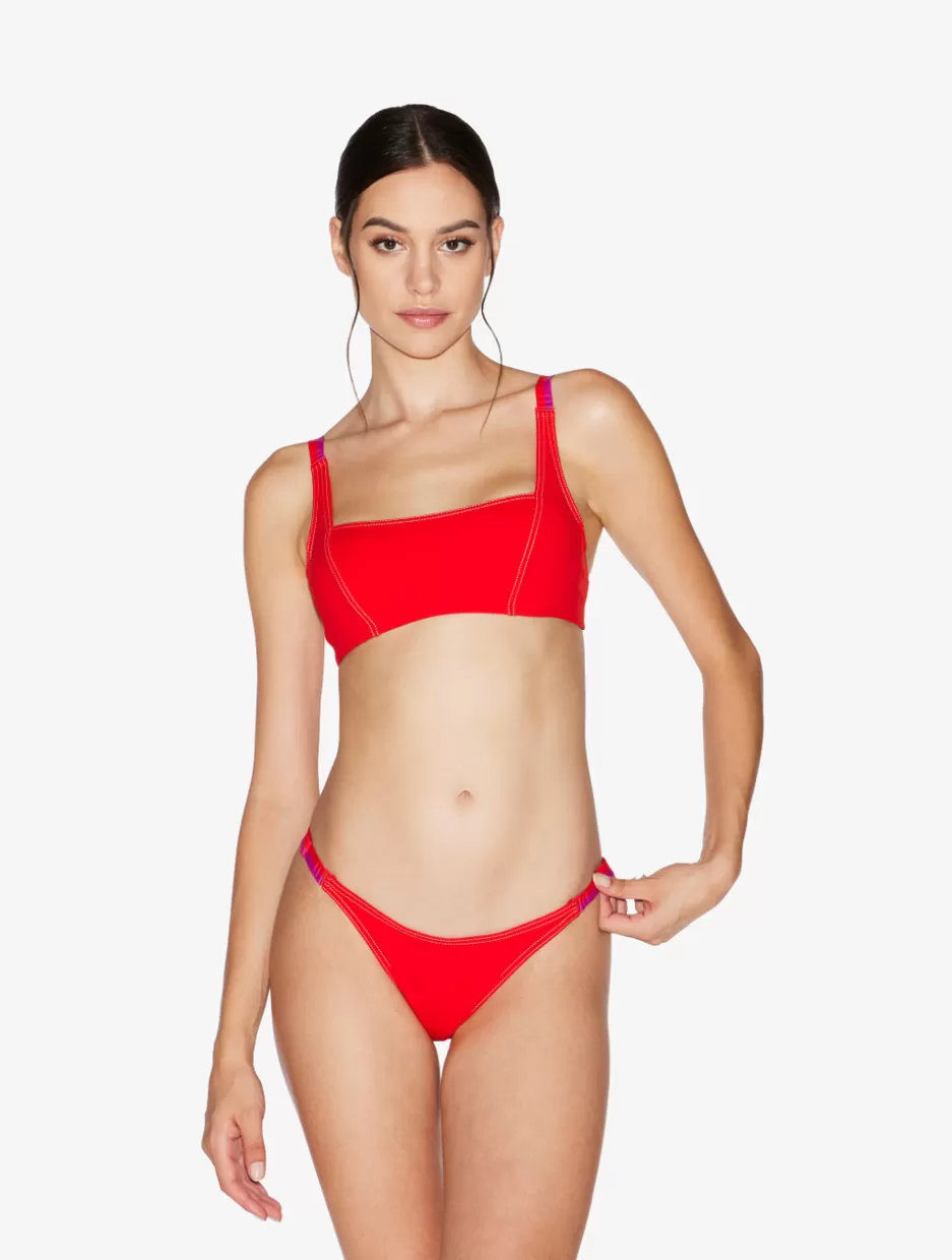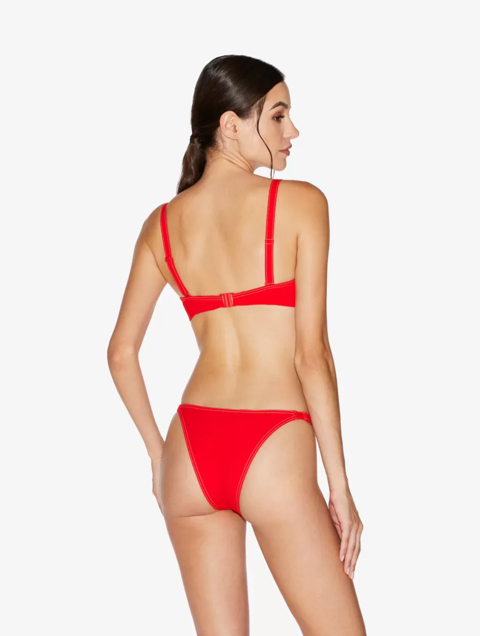 Combining flawless, sophisticated silhouettes with sports-inspired details, the When Summer Comes collection is designed to offer luxurious comfort and make you look and feel incredible whether you’re on the beach or by the pool. Crafted from exquisite stretch Lycra, the Brazilian Bikini Brief in Red is cut to a timeless, flattering shape and finished with contrasting stitching and bi-color straps. Style with the matching Bralette, Triangle or Bandeau Bikini Top to complete the look.