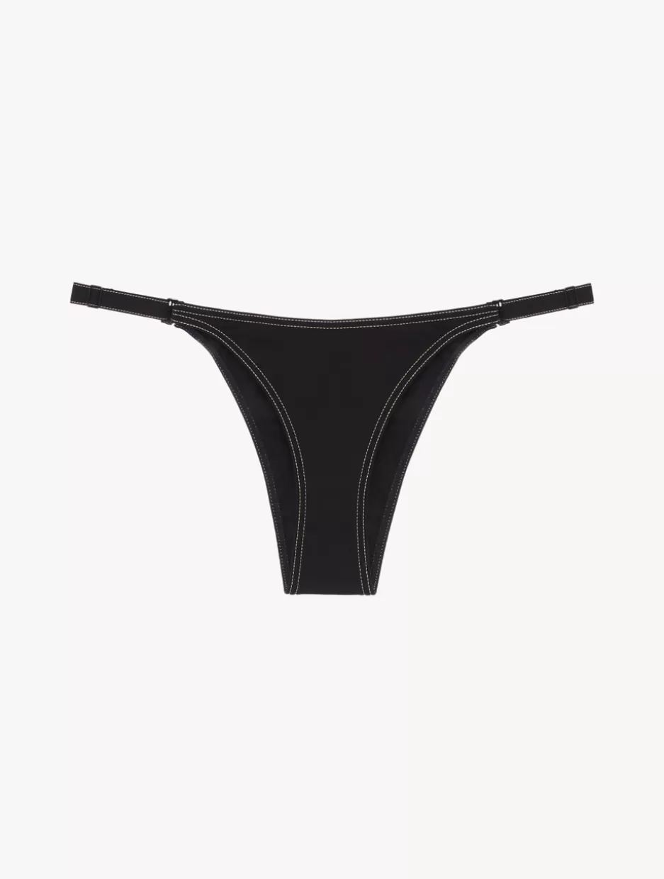 Combining flawless, sophisticated silhouettes with sports-inspired details, the When Summer Comes collection is designed to offer luxurious comfort and make you look and feel incredible whether you’re on the beach or by the pool. Crafted from exquisite stretch Lycra, the Brazilian Bikini Brief in Black is cut to a timeless, flattering shape and finished with contrasting stitching and bi-color straps. Style with the matching Bralette, Triangle or Bandeau Bikini Top to complete the look.