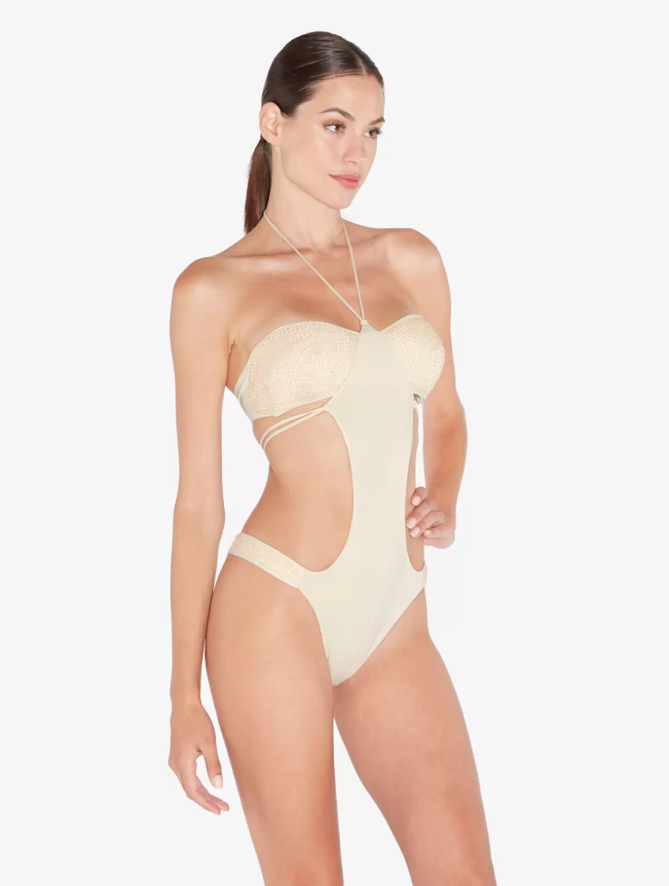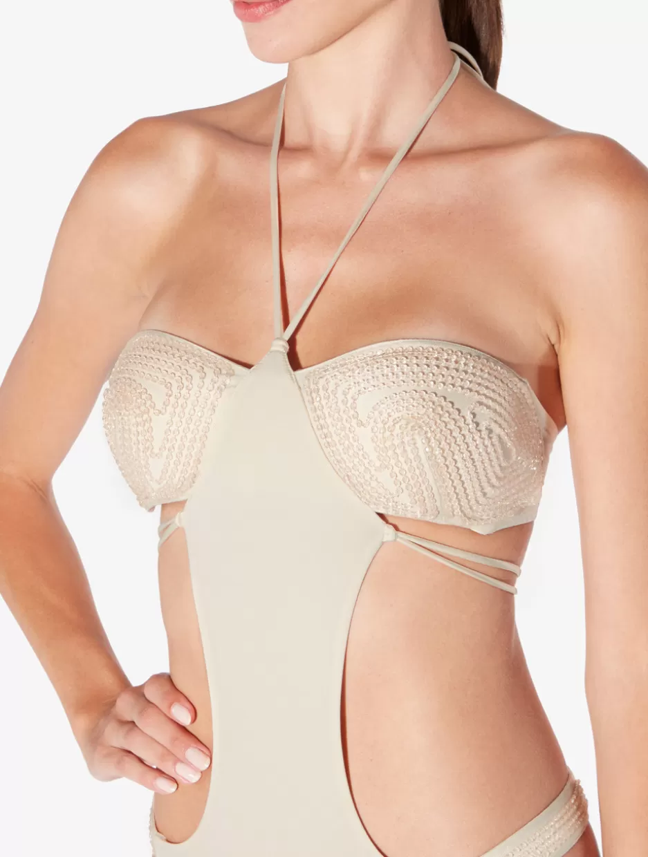 One-Piece Bathing Suits-La Perla Swimsuit In Champagne With Beading Beige