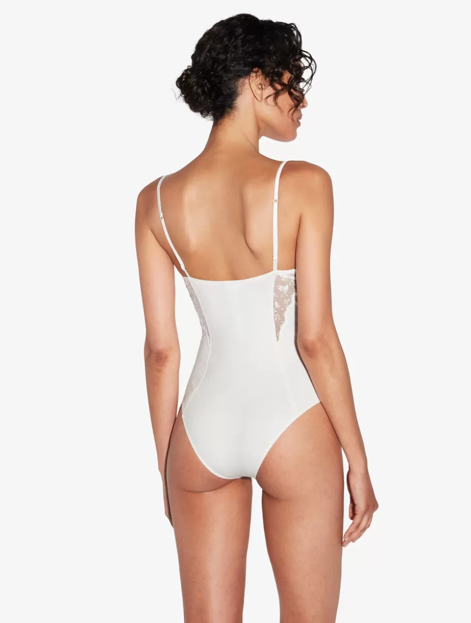 Bodysuits & Bustiers-La Perla Bodysuit In Lys With Embroidered Tulle OffWhite