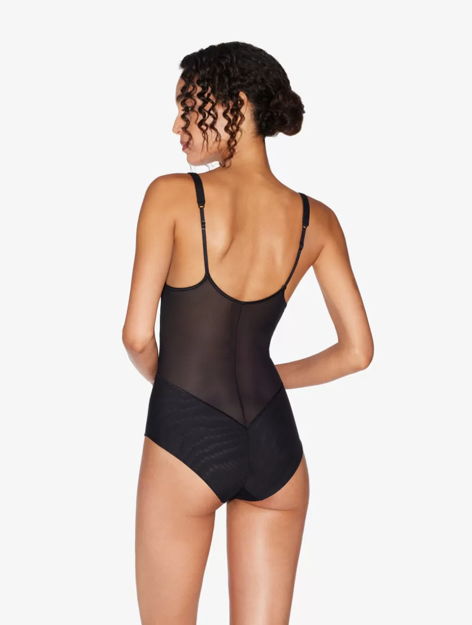The Maison Contouring collection offers an irresistibly comfortable alternative to restrictive shapewear. Crafted from soft stretch tulle, this bodysuit creates a smooth, sculpted silhouette when worn under clothes. Padded cups and underwiring lift and support the bust while adjustable straps ensure a personalised fit.