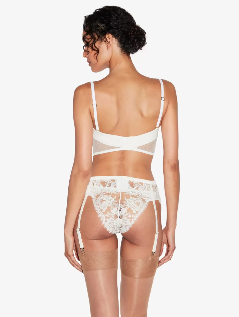 A truly exceptional collection of exquisite pieces, Per Sempre is lovingly crafted from precious upcycled materials, reborn and transformed into silhouettes designed to be treasured forever. Meticulously crafted from cotton Leavers lace, the Suspender Belt in Off White combines ethereal, delicate details with a timeless, sophisticated silhouette and luxurious comfort. It’s lovingly finished with small Swarovski pearls that symbolize pure love and prosperity. Complete the look with the coordinating Thong or Brazilian Briefs.