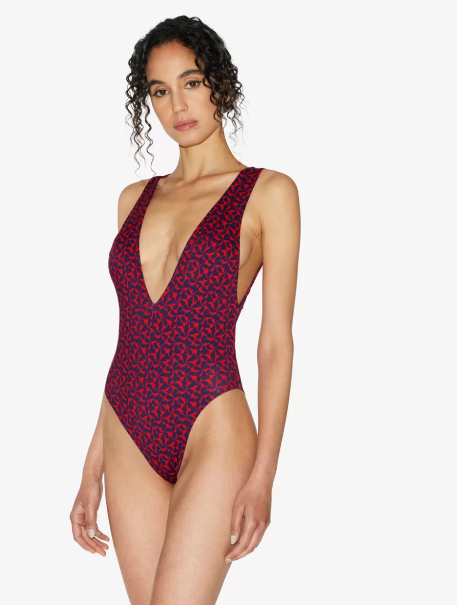 A classic silhouette given a boldly sophisticated spin, the Summer Winds swimsuit, printed in striking Red and Blue, is …