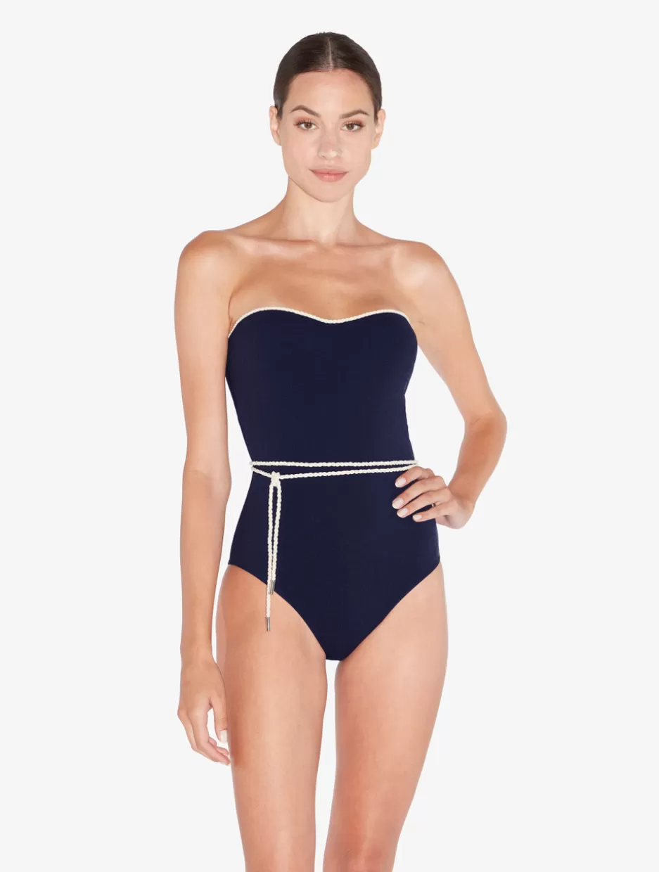 One-Piece Bathing Suits-La Perla Monogram Underwired Swimsuit In Navy Blue