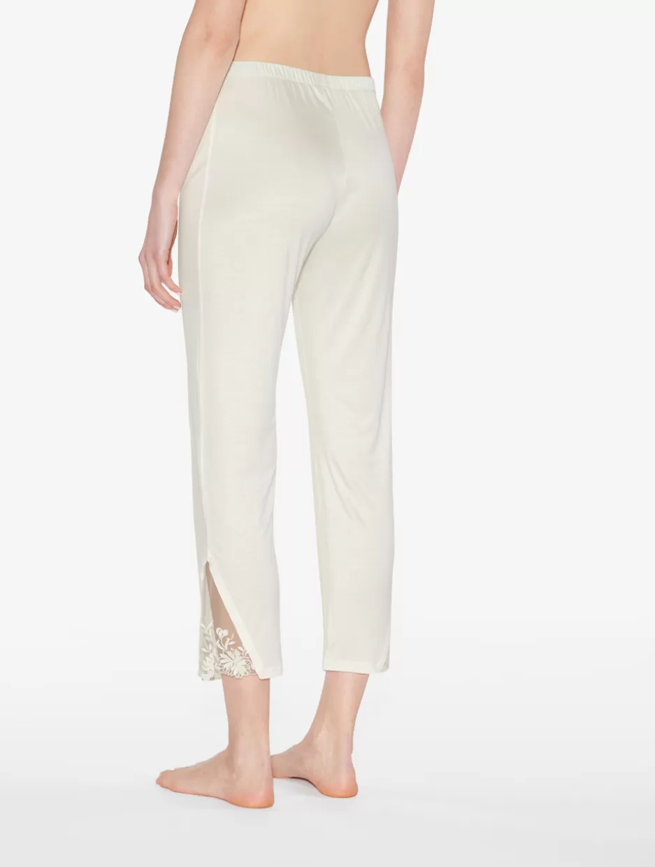 Pajamas | Loungewear-La Perla Trousers In Off-white Modal With Embroidered Tulle Natural