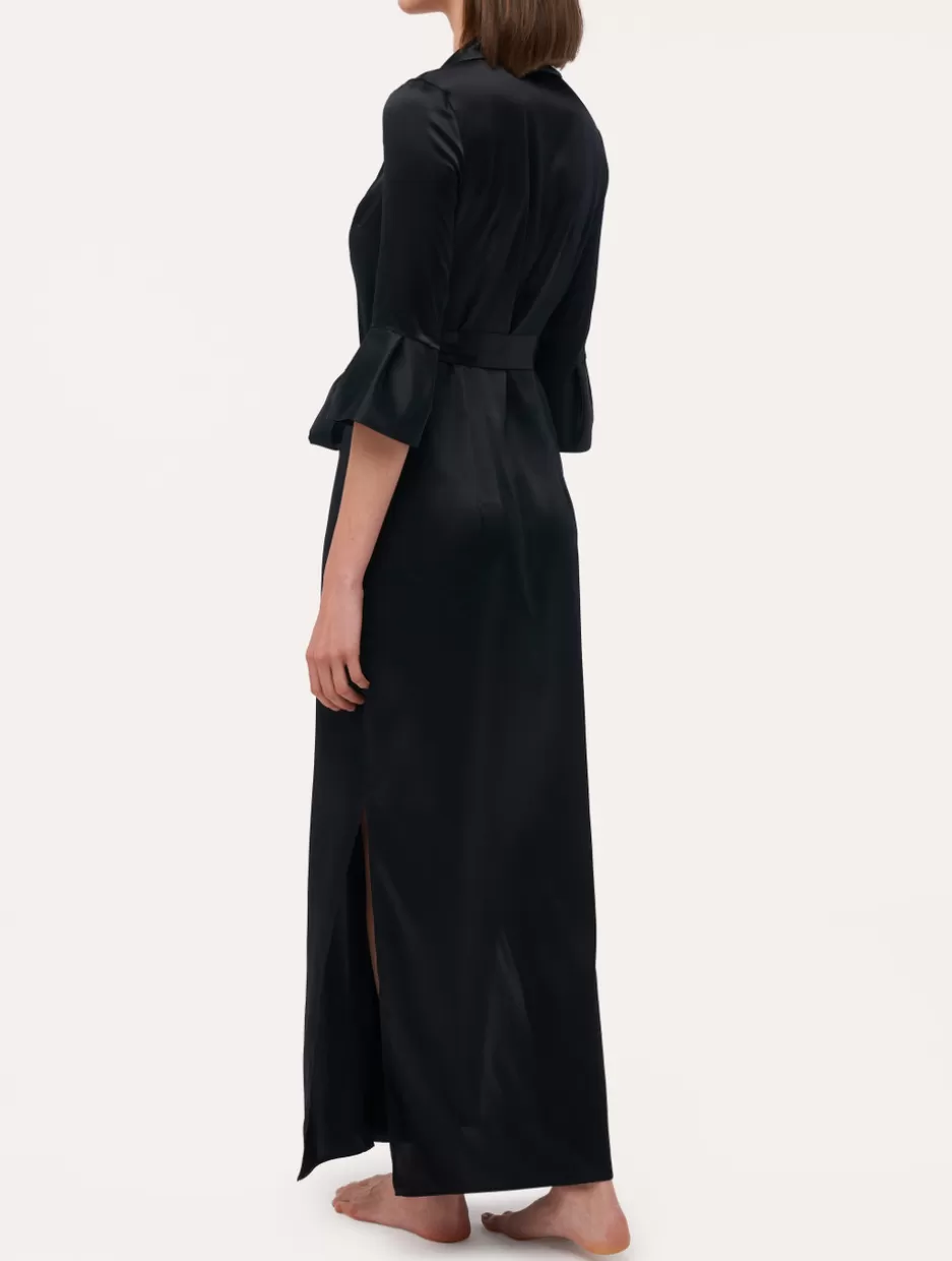 Robes | Silk Sleepwear-La Perla Long Silk Belted Robe Black