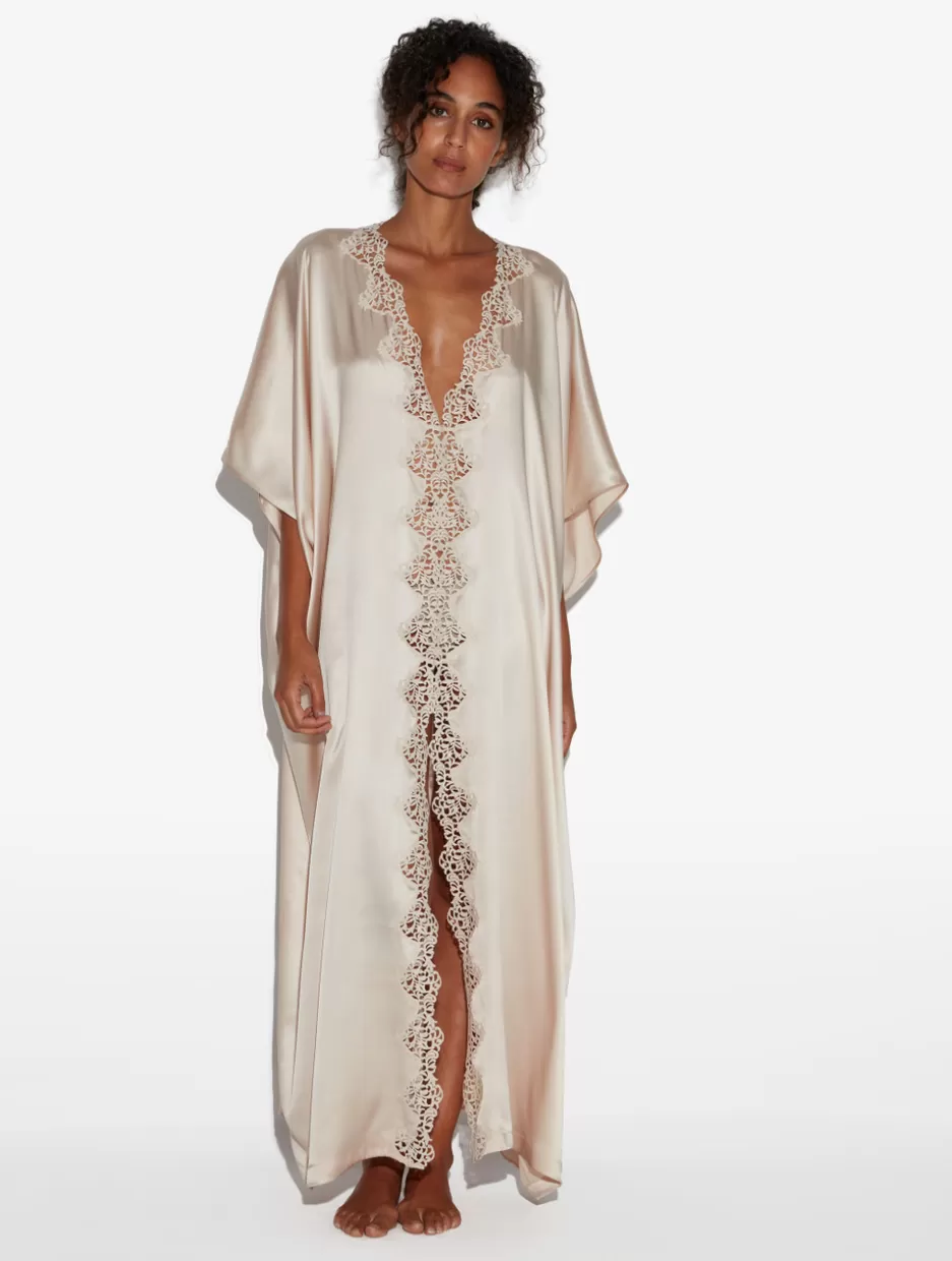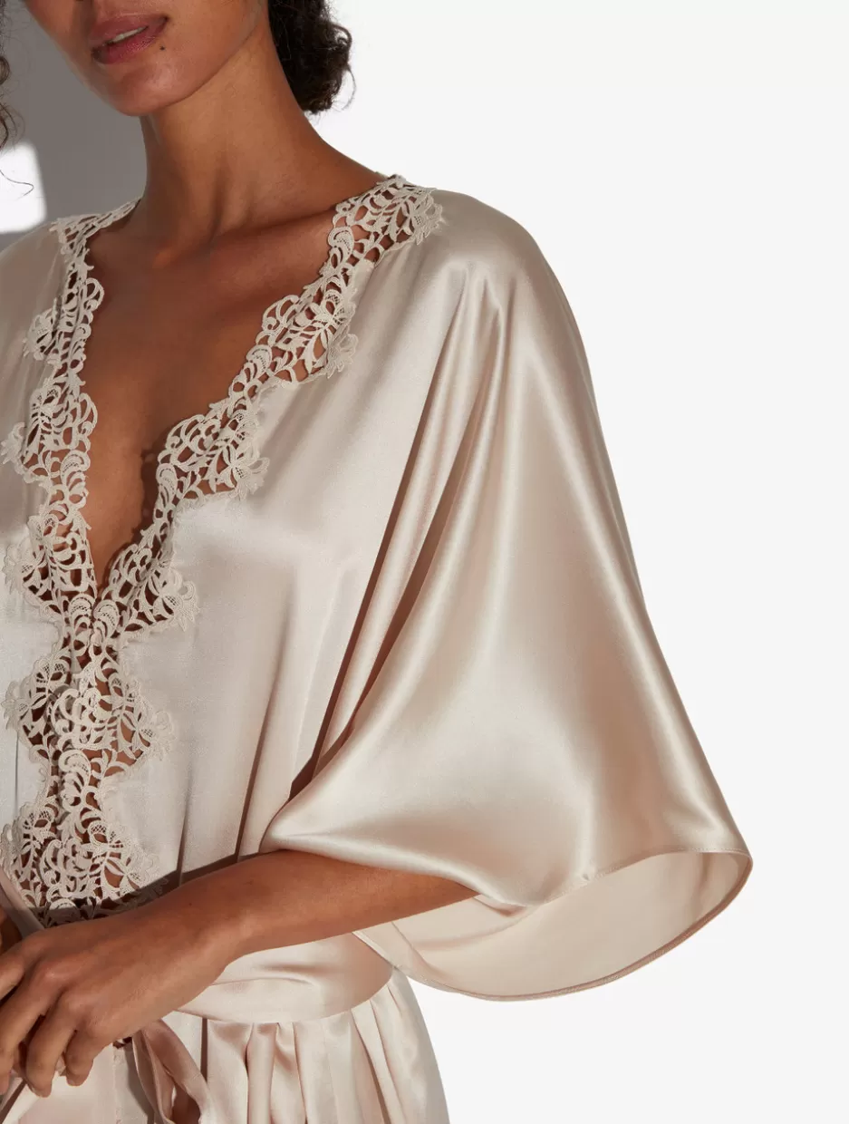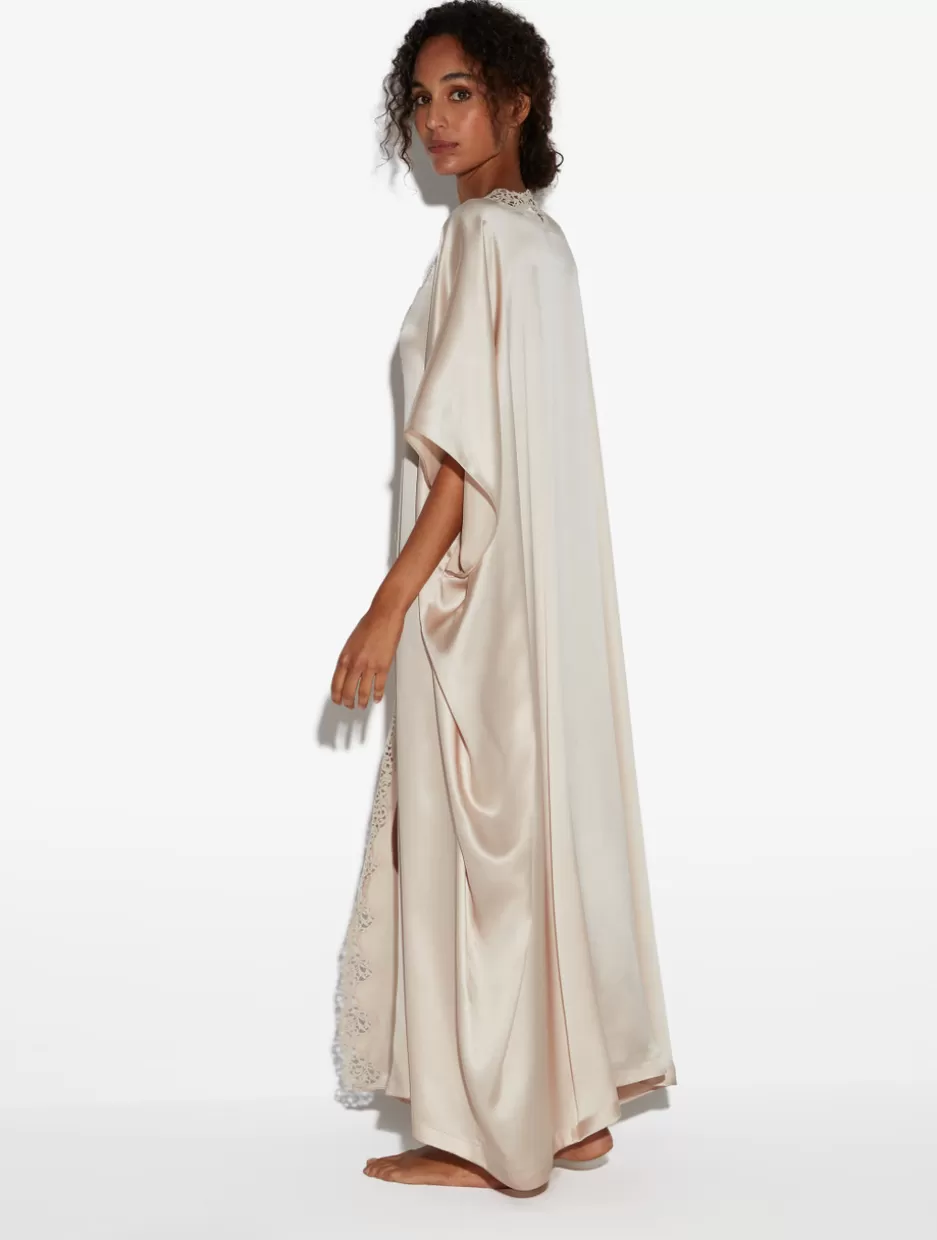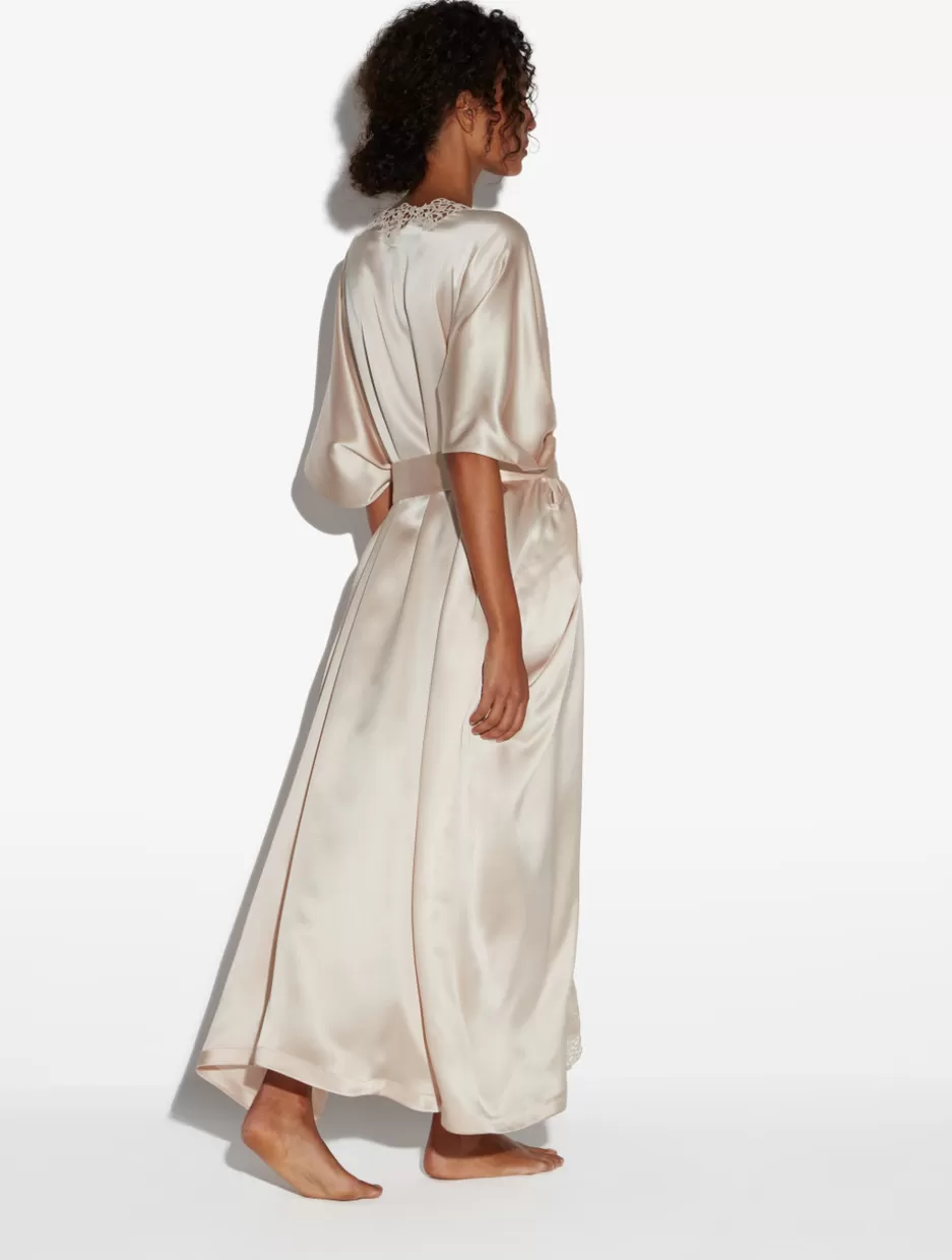 Robes | Silk Sleepwear-La Perla Rose Beige Long Silk Robe With Macramé RoseBeige