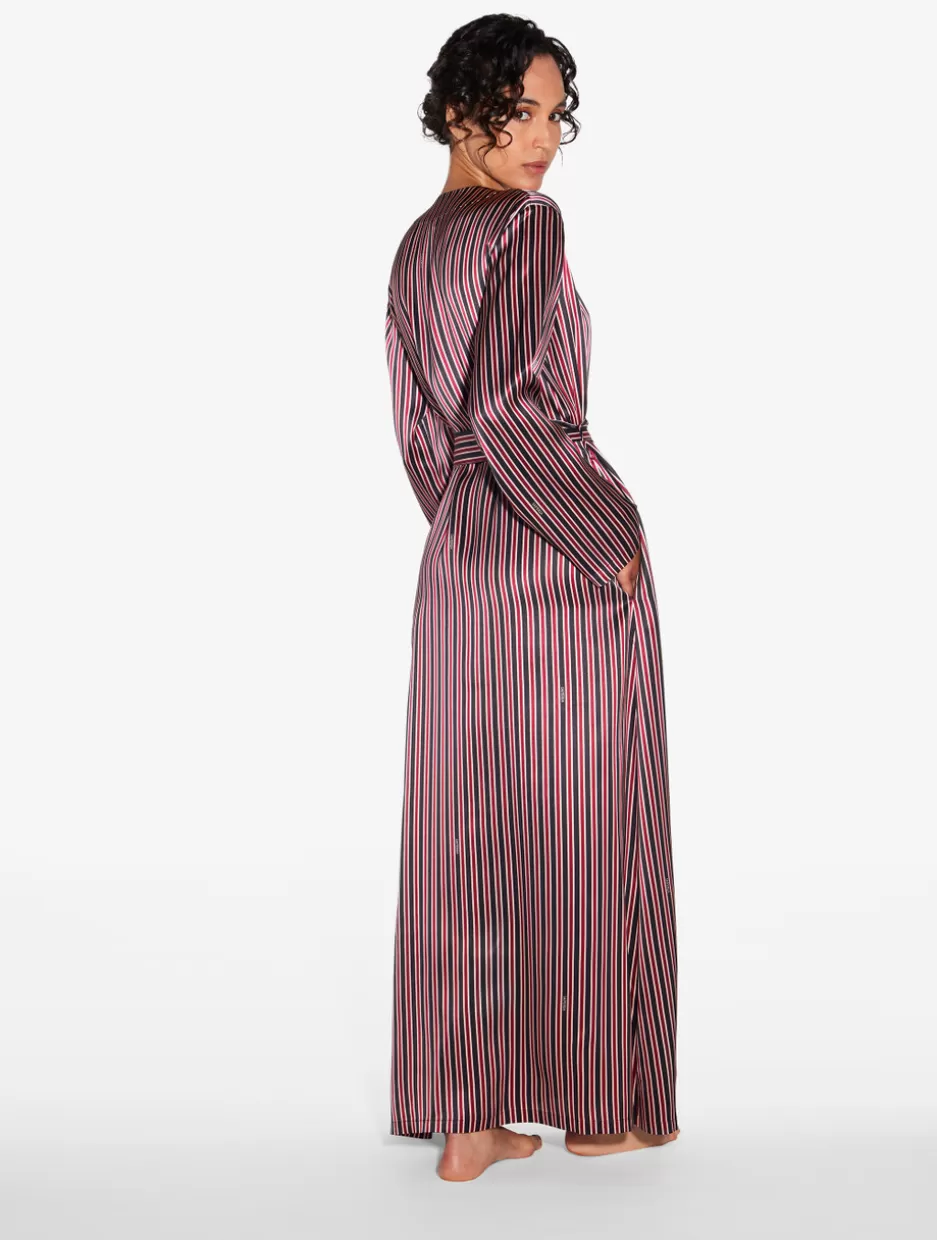 The ultimate cover-up, slip into the timeless elegance of our long silk robe. Conjured in a rich stripes, its wrap-around shape and tactile finish are the perfect blend of comfort and luxury and designed to be treasured for years to come. Pair with the matching pajamas or camisole and sleep shorts for elevated after-dark dressing, everyday.