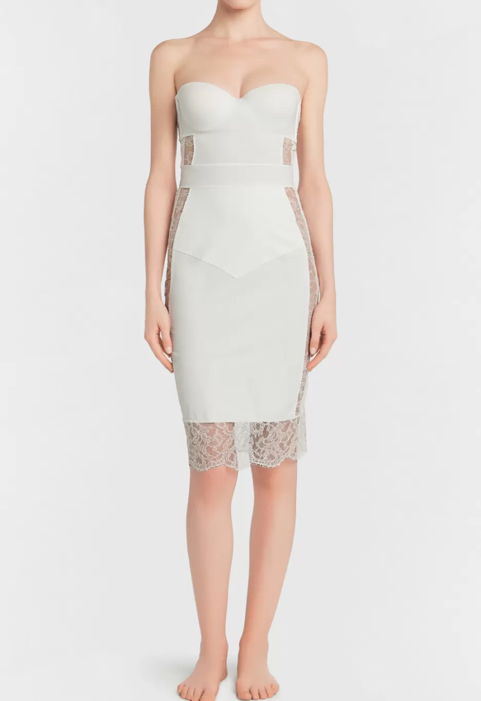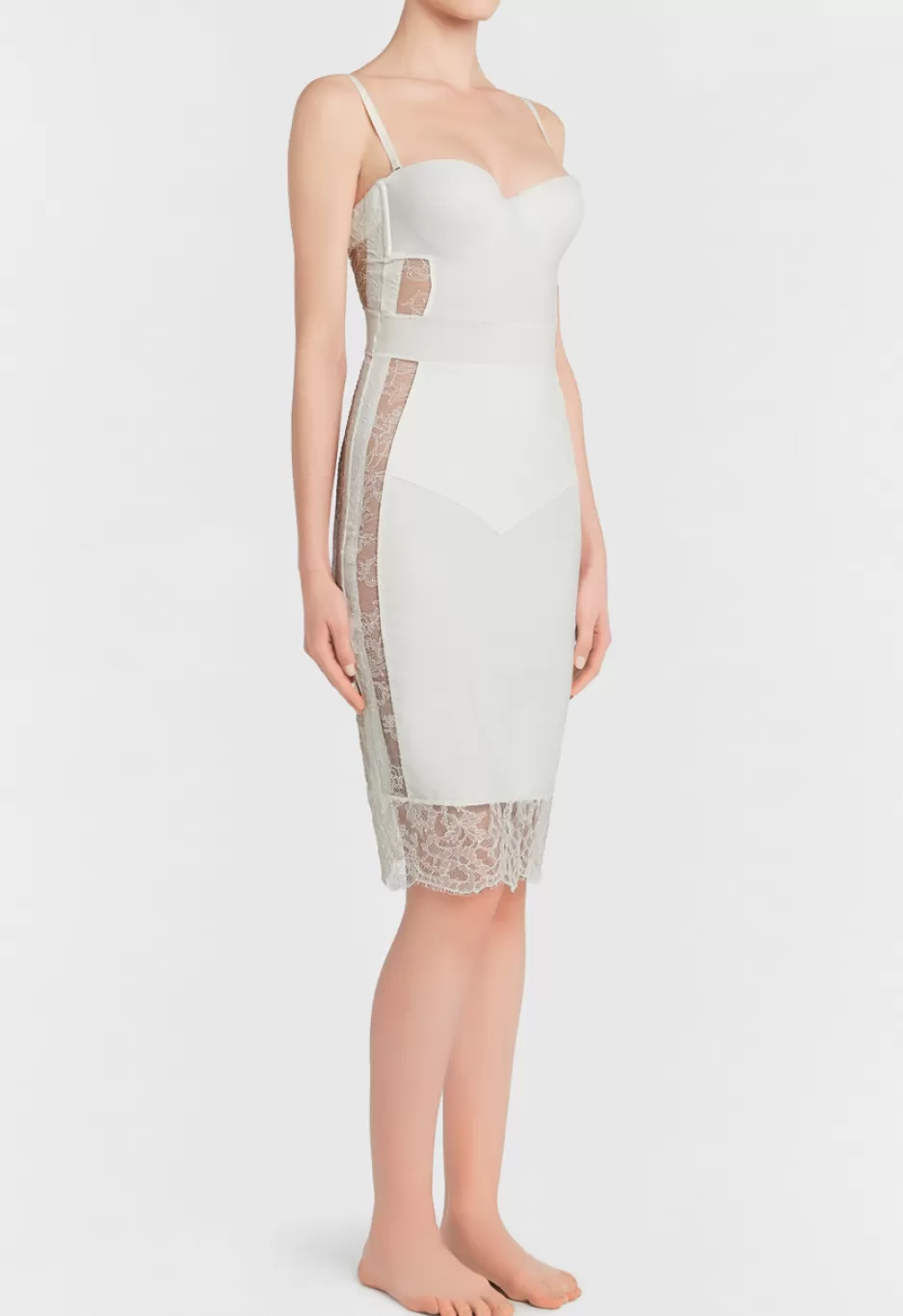 A perfect range of underwear to enhance the figure under any garment, with an added touch of romance. Petticoat dress made from Lycra® Beauty, a high-quality, incredibly comfortable fabric with a compact texture. This is an elegant and decidedly feminine creation thanks to a width of stretch Chantilly lace. A silicone band guarantees support and optimal wearability, even when worn strapless.