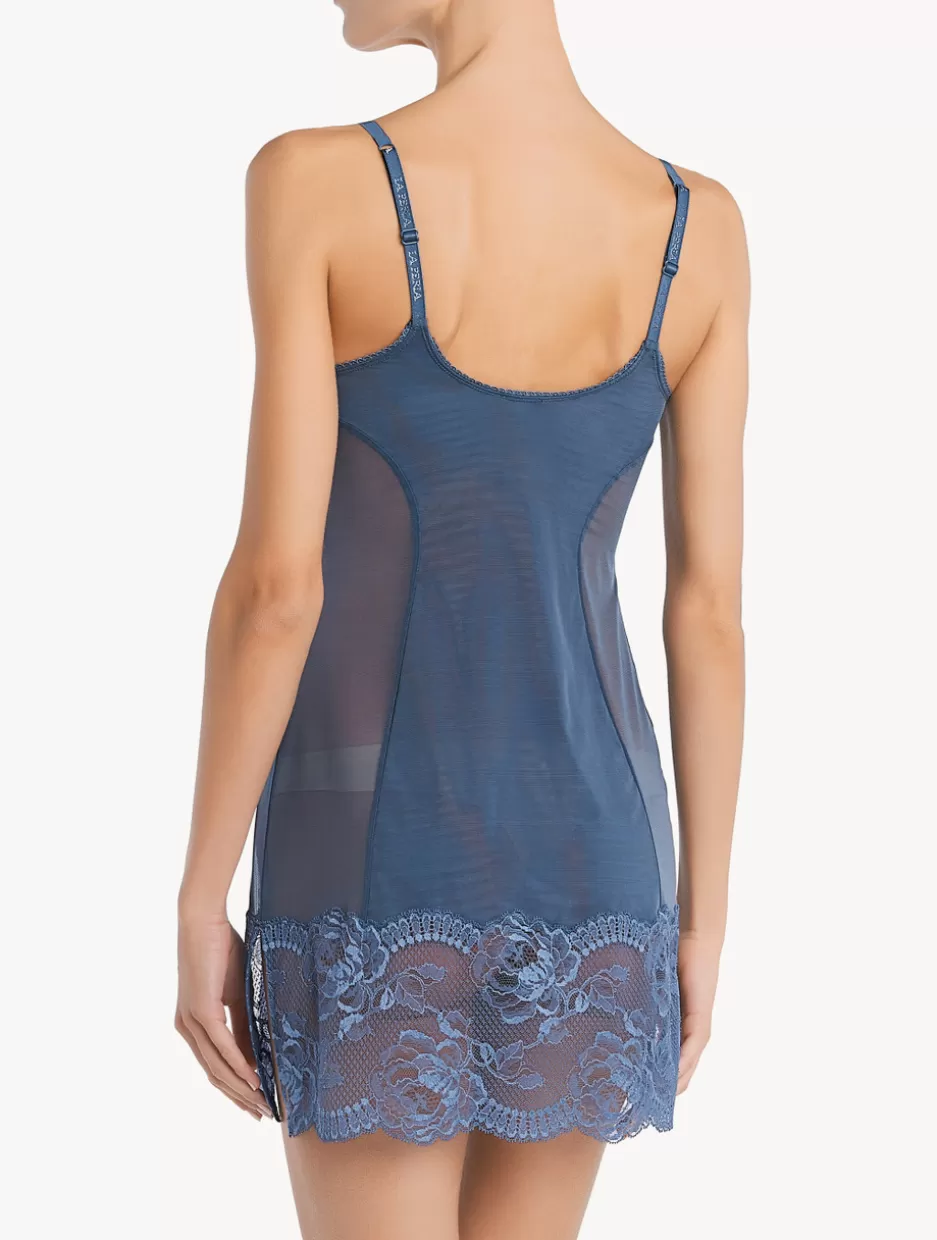 Slips & Dresses-La Perla Dark Lace Slip Blue