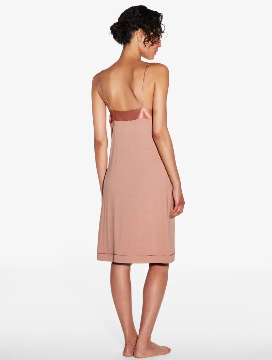 A powerful blend of contemporary femininity and everyday luxury, the Midnight Botanica collection combines romantic detailing and tactile fabrics in timeless pieces that are designed to be treasured. The embodiment of elevated comfort, the Short Nightdress in Blush Clay is crafted from a soft stretch jersey made from sustainably-sourced viscose and beautifully finished with silk satin piping and delicate straps. Complete the look with the co-ordinating Short Robe.
