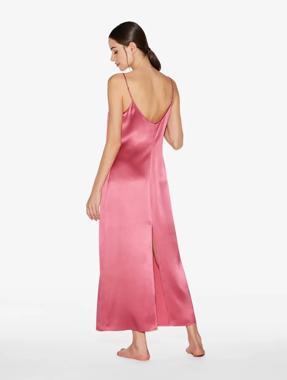 Crafted from pure silk satin, this essential nightwear collection is endlessly appealing. These supremely soft pieces are a pleasure to sleep in, while doubling as luxurious separates during the day. This long nightdress features a straight, hip-skimming silhouette and a relaxed fit. A high slit offers a sensual flash of skin at the back. Adjustable straps ensure a perfect fit.