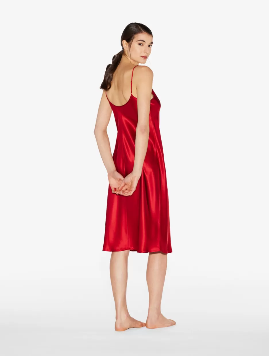 Slips & Dresses | Silk Sleepwear-La Perla Silk Midi Nightdress In Garnet Red